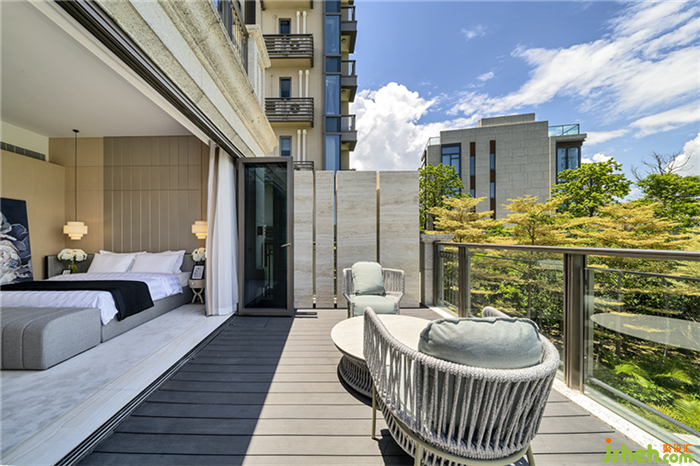 趟折式玻璃幕門連接逾千呎的大花園,私享七米長的大泳池,與自然建立起聯(lián)系與互動,室內(nèi)外貫通,光影自由穿梭,空間感更加舒坦,花園成為房屋自然的延伸,視線也因此愈加滲透。