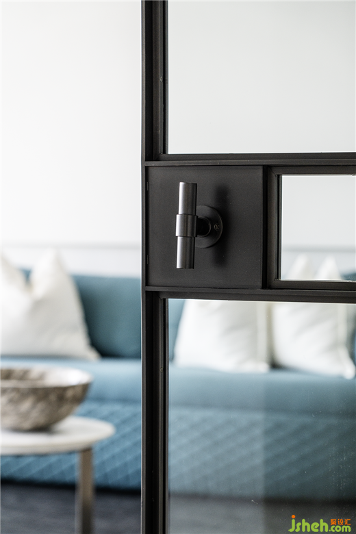 小型的私人客廳,簡約自然的手法貫穿始終,克制注入些許個人喜愛的低飽和度偏冷色調(diào)的藍(lán)色系列家具,空間情緒彰顯和諧舒適。