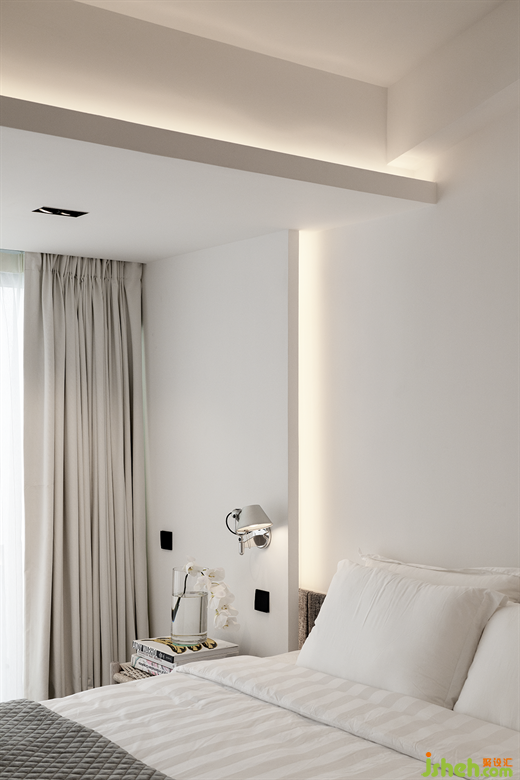 臥室基本采用隱藏式的照明設(shè)計(jì),創(chuàng)造出舒適寧?kù)o的空間氛圍和情緒,素雅簡(jiǎn)潔的整體布置,平和有序,令人心情舒暢,松弛回味自己的趣味人生。