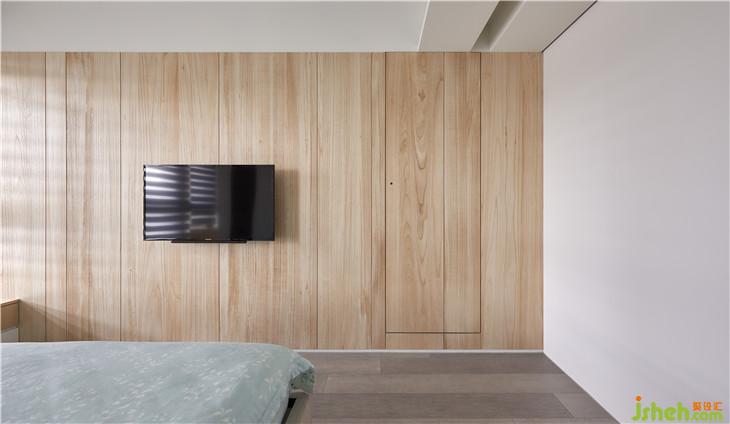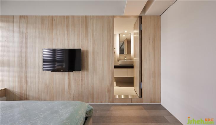 房間入口上方的梁利用燈帶的手法弱化壓迫感
