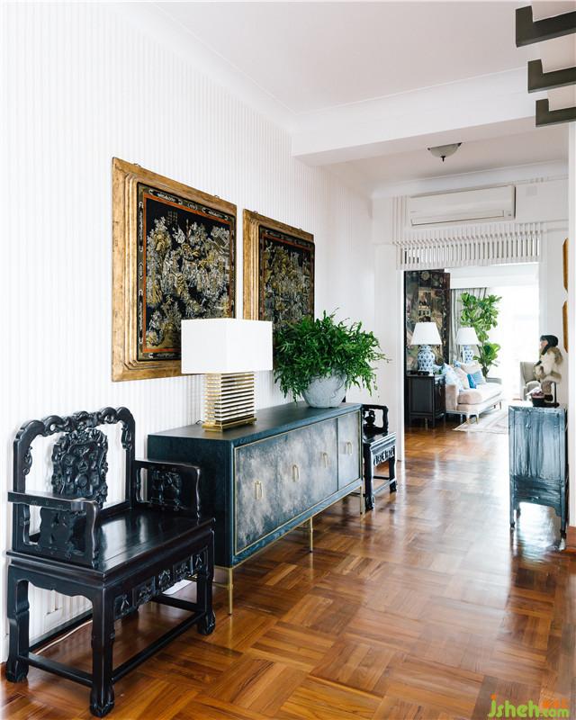 客廳走道:Baker玄關(guān)柜、清末古董酸枝對(duì)椅