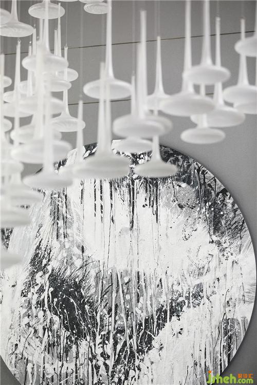 云展云舒,自由自在。云之自由正是由于其無(wú)“自性”,無(wú)所常形,自在恒在。云之狀態(tài),如我所愿。搭配高低錯(cuò)落的碳化竹子花瓶,插三兩支花開(kāi)枝葉,東莞售樓處設(shè)計(jì)配以古字垂掛裝飾品,取“風(fēng)來(lái)疏竹,風(fēng)去而竹不留聲”之意。事來(lái)心應(yīng),事去心止。藝術(shù)品并不是安靜的呆在那里,而是會(huì)引領(lǐng)我們?nèi)ジ惺苌畹姆諊???臻g本是無(wú)垠無(wú)形,作為一個(gè)設(shè)計(jì)者,也許永遠(yuǎn)只能捕捉,無(wú)法下定義,因?yàn)榫拖褚岸衫锏闹圩?,就算無(wú)人存在,也能物我相忘自在橫臥,天地兩悠悠。