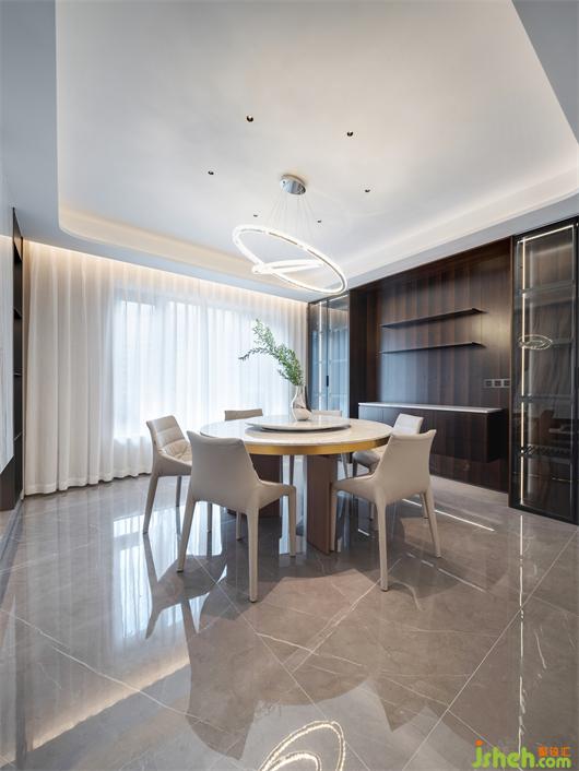大理石餐桌上的那抹自然與造型吊燈相得益彰,給三餐四季帶來無限的靈動氣息。