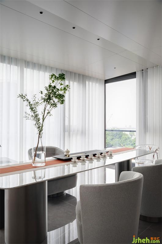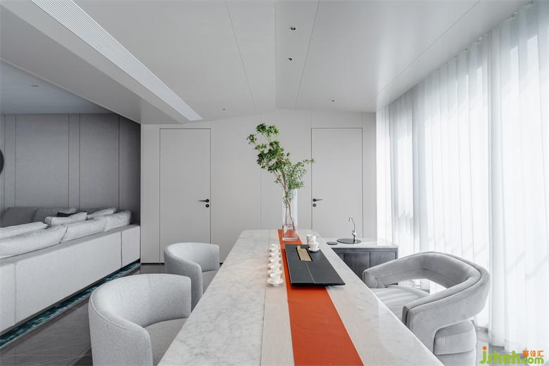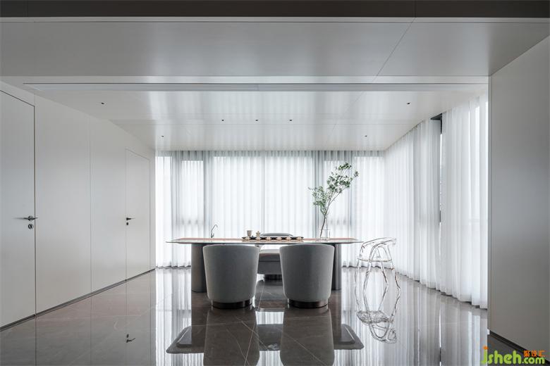 在灰白色的純凈質(zhì)感之上,奢石與布藝的調(diào)和,日常收納的貼心,家居裝修都兼顧了空間的品位張力,將生活與藝術(shù)的融合,一并納入了設(shè)計的考量中。
