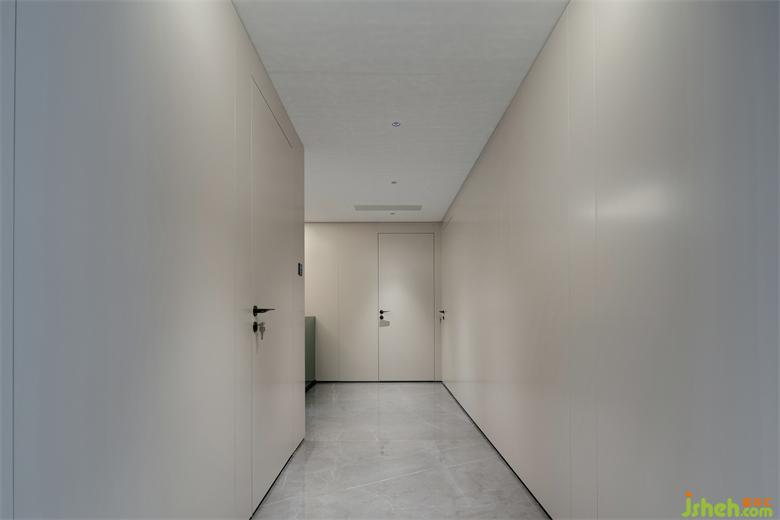 樓梯作為空間主軸,上下聯(lián)合,家居裝修采用暖灰色瓷磚鋪設(shè),搭配暖光腳燈,含蓄而張揚。