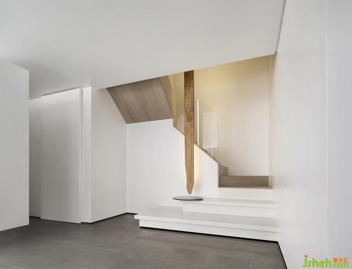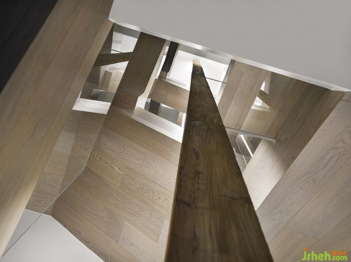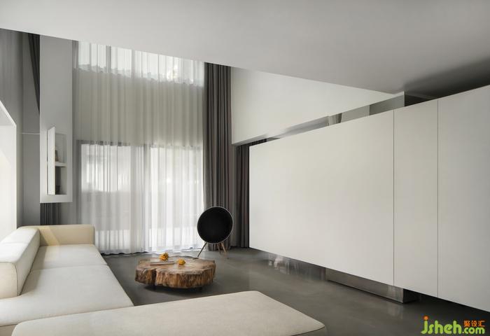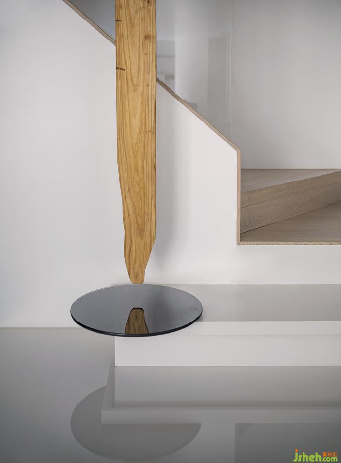 極簡滲透生活哲學(xué),梯級與背面被白橡木木地板包裹,玻璃欄桿讓樓梯變得通透鮮明。12米長的榆木交接而成的大吊燈,把LED硬燈帶內(nèi)嵌在榆木板內(nèi),廣州別墅裝飾巧妙地解決了樓梯的照明,成為一個樓梯間的視覺焦點,以靜制動,最終匯聚在負二地面梯級的一個黑色烤漆圓形玻璃面上,形成一個無法復(fù)制的“高山流水”的瀑布景觀。