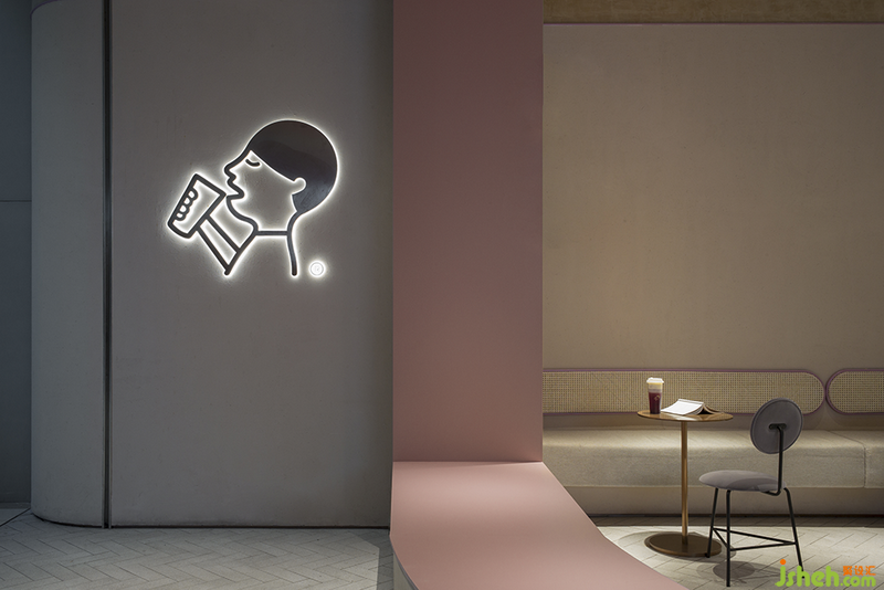 “顏系列”之下,本店的主題為“綰色”。在主要立面上,色彩以混入天然稻草泥的肌理漆為載體,自然粗糲的質感帶來清新質樸的感受。巖石造型的家具采用未經(jīng)過多加工的金屬材質,作為空間中的點綴,恰與溫潤的泥質相互調和。