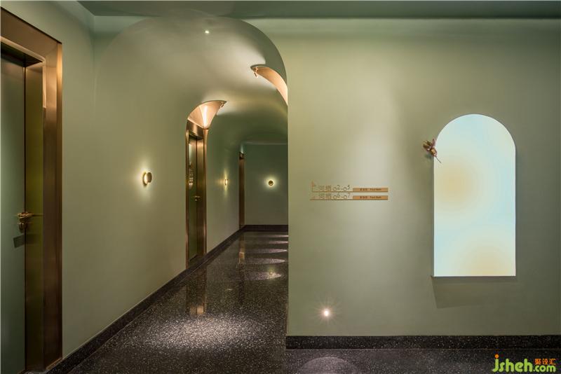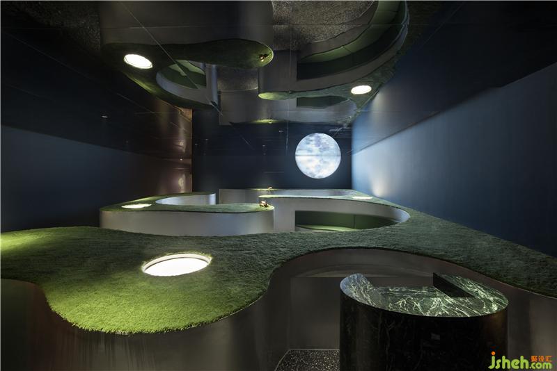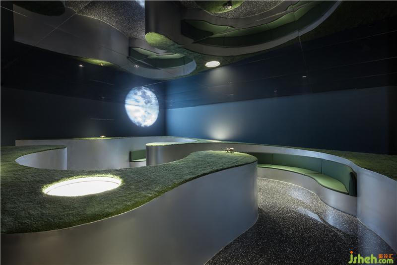 月光下的灘涂是夢幻和詩意的場景。一方面用曲線型的半圍閉座位進(jìn)行視線阻擋,緩解公共區(qū)域換鞋的尷尬感受;另一方面通過氛圍的渲染對(duì)消費(fèi)者發(fā)出預(yù)告,提示即將到來的足浴和SPA體驗(yàn)。裝修公司