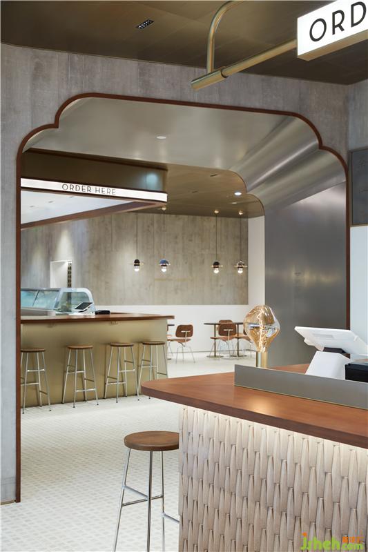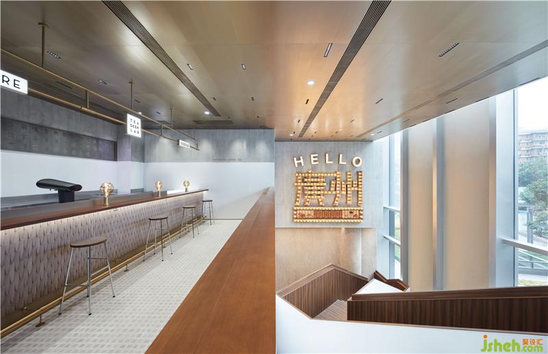 空間中的門洞造型來源于騎樓門窗中常見的紋樣,深色裝飾線條進一步強化了嶺南建筑的印跡。