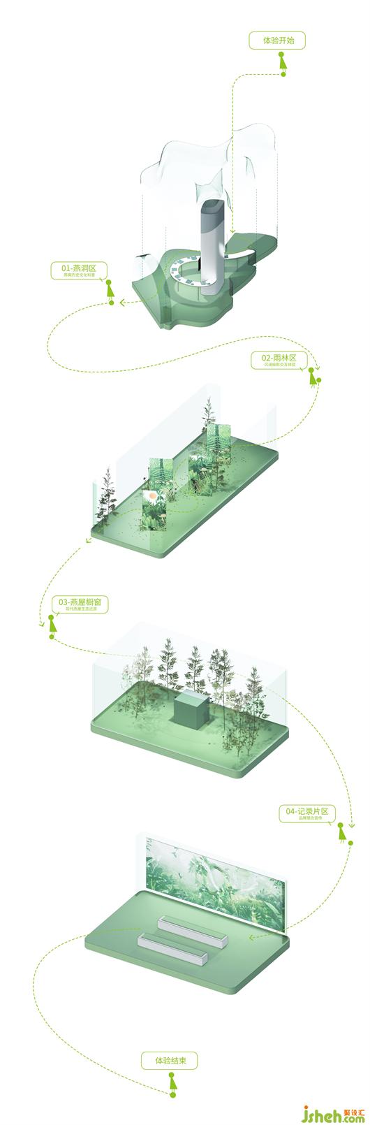 人的探索欲需要被不斷激發(fā)。立品在二層空間置入文化再現(xiàn)的場景表達,還原金絲燕生活的燕洞、熱帶雨林及現(xiàn)代燕屋虛擬場景。
