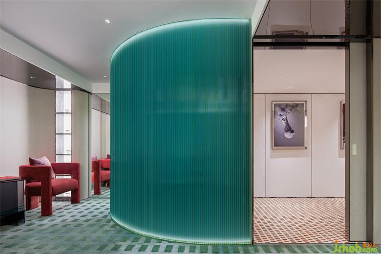 三層空間承載燕窩品鑒和聚會功能,在白里透紅的底色上引入亮眼的墨綠,帶來不一樣的空間印記。