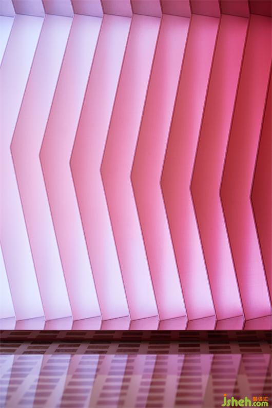 隨空間動(dòng)線轉(zhuǎn)換,設(shè)計(jì)師用不同的材質(zhì)和肌理進(jìn)行細(xì)節(jié)強(qiáng)調(diào),通過(guò)折線的鋪排、幾何線條的特定組合,延續(xù)著空間的張力。