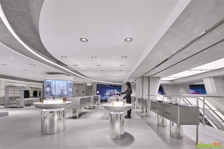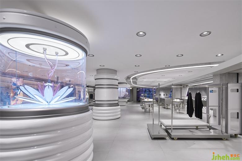 為了營造電影場景般的實驗室氛圍,配飾區(qū)采用點狀分布的金屬島臺,而實驗室中標志性的托盤、緊急按鈕等元素也出現(xiàn)在各類貨架中,增加了場景的可信度。