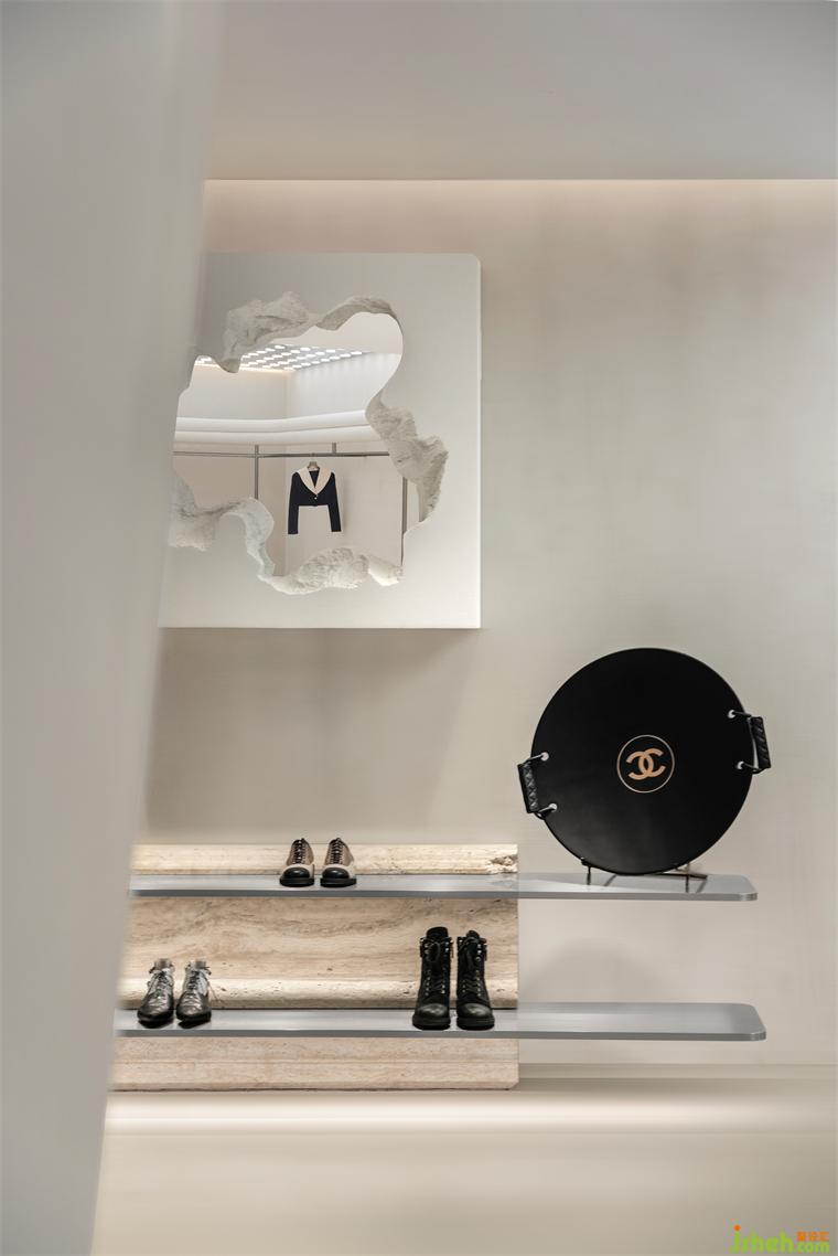 月的裝置在這里清晰可見,立品利用玻璃將吊掛的裝置和挑空空間進(jìn)行圍合,裝修設(shè)計(jì)形成獨(dú)特的場所記憶。