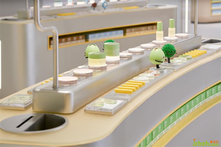 品牌強調(diào)特有A+B個性護膚理念,裝修設(shè)計不同的基礎(chǔ)產(chǎn)品加精油組合為肌膚護理創(chuàng)造更多的可能性??臻g功能布局同樣滿足兼容性和高效性,以花盆造型設(shè)計的圓形導臺陳列精油產(chǎn)品作為功能和視線的核心,裝修設(shè)計在垂直和平行方向上與基礎(chǔ)產(chǎn)品導臺和陳列柜形成不同的組合,方便消費者輕松搭配個性護膚方案。