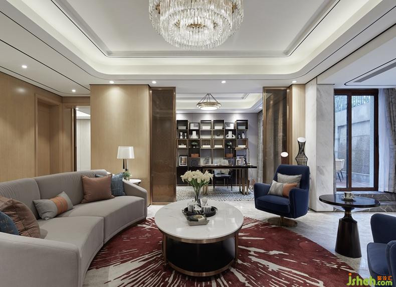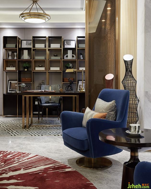 與此同時,書房採取半開放式設(shè)計,最大程度延伸面積,使空間延伸性及視覺通透性達到最佳效果。At the same time, the study adopts semi-open type design, the maximum extent extends the area, makes the space extensibility and the visual permeability reach the best effect.