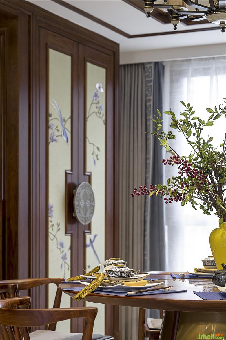 室內(nèi)設(shè)計(jì)師所使用的中式家具優(yōu)雅與簡約兼具,清簡的線條與背景墻渾然一體,營造出古典恬靜的空間氣韻,整體空間規(guī)整對(duì)稱又不乏清朗俊逸。
