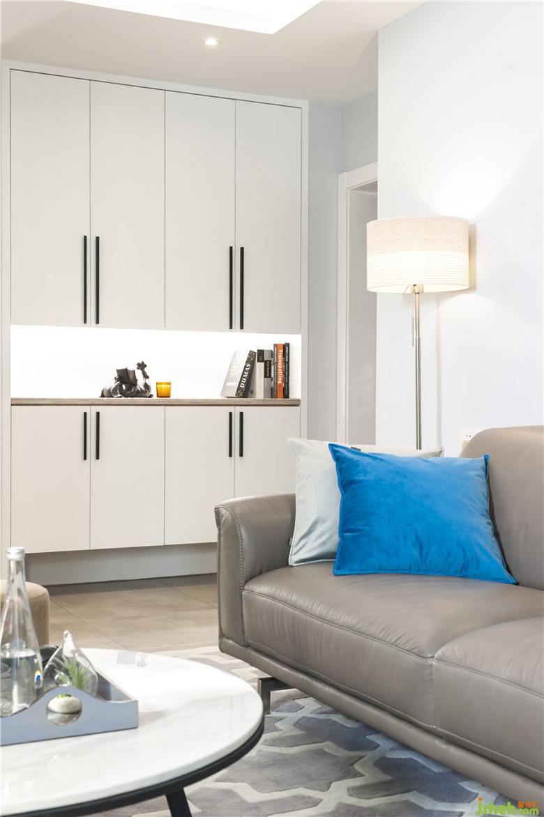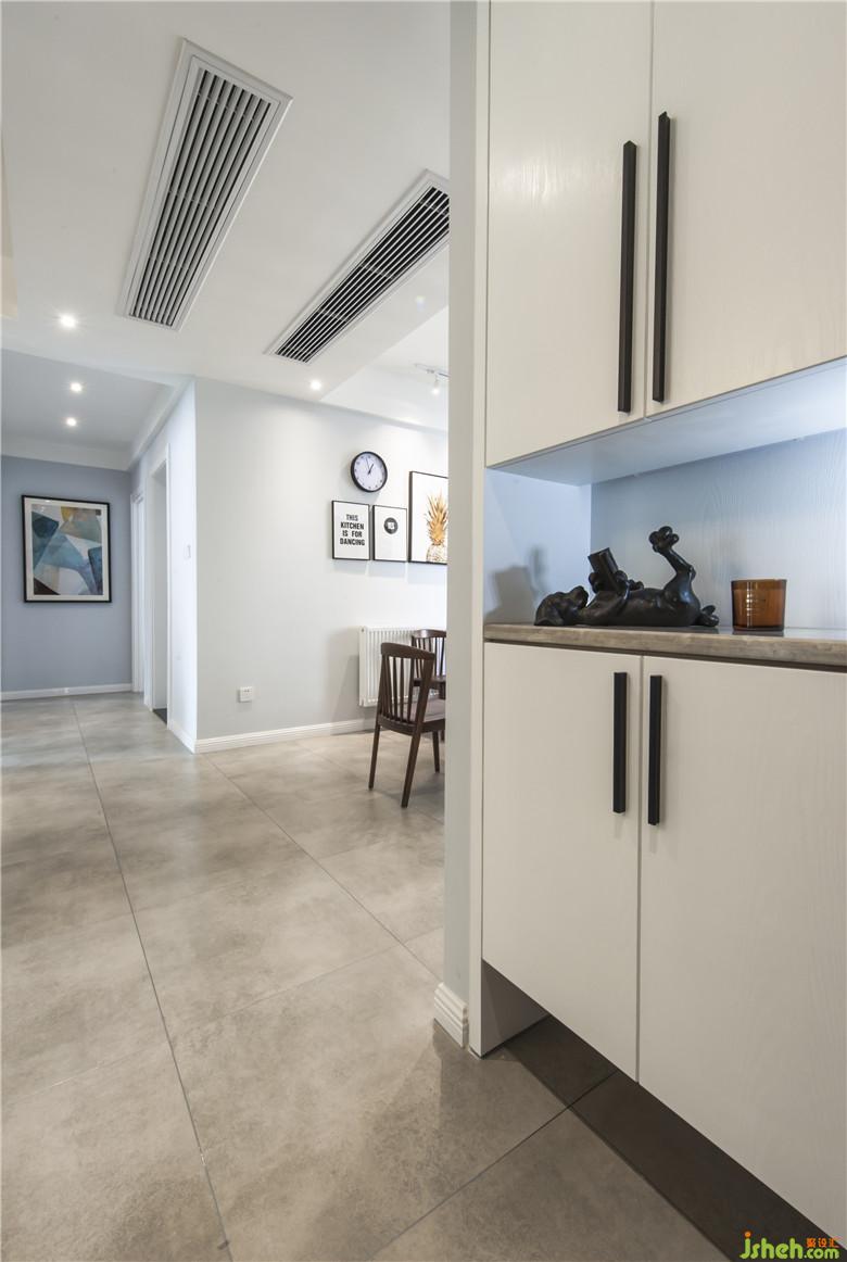 結(jié)構(gòu)簡單明了,鞋柜設(shè)計方便實用,水泥色的地面古樸自然。