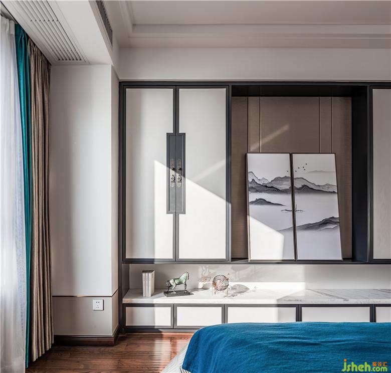 主臥擁有充裕的采光,褶紋的窗簾、潔白的清紗,以及床位處的山間水墨畫,與床頭落地窗前肆意綻放的花飾交相呼應(yīng),使整個(gè)空間如同一幅緩緩打開的山水畫卷,俊秀清麗,晨曦日落光影交替變換,動(dòng)態(tài)光影的行進(jìn)中,室內(nèi)設(shè)計(jì)師使空間有了更加立體而生動(dòng)的表情。