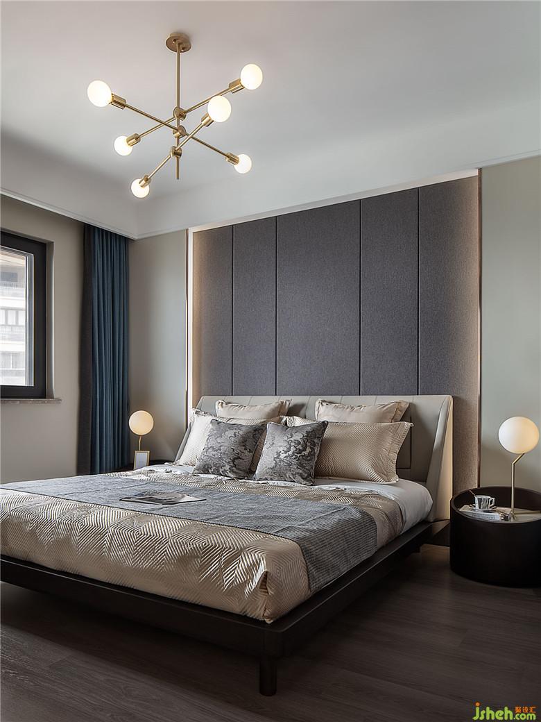 次臥,淺駝色的墻面,胡桃木的柜門,淺灰的床品。室內(nèi)設(shè)計師讓空間有限的臥室也顯得溫情脈脈。整個臥室配色十分簡潔沉穩(wěn),亦不乏明快。蒲公英吊燈,讓臥室又顯得有些浪漫。