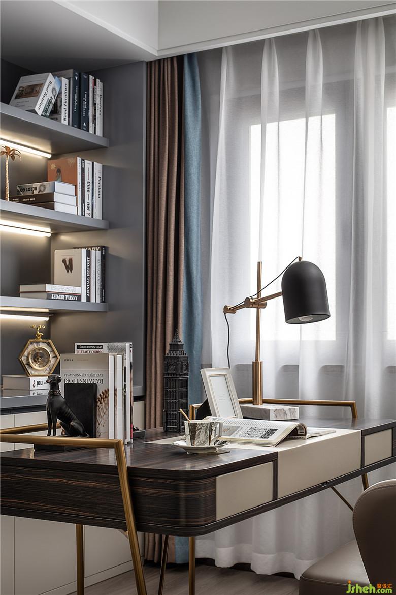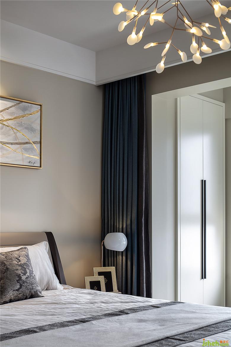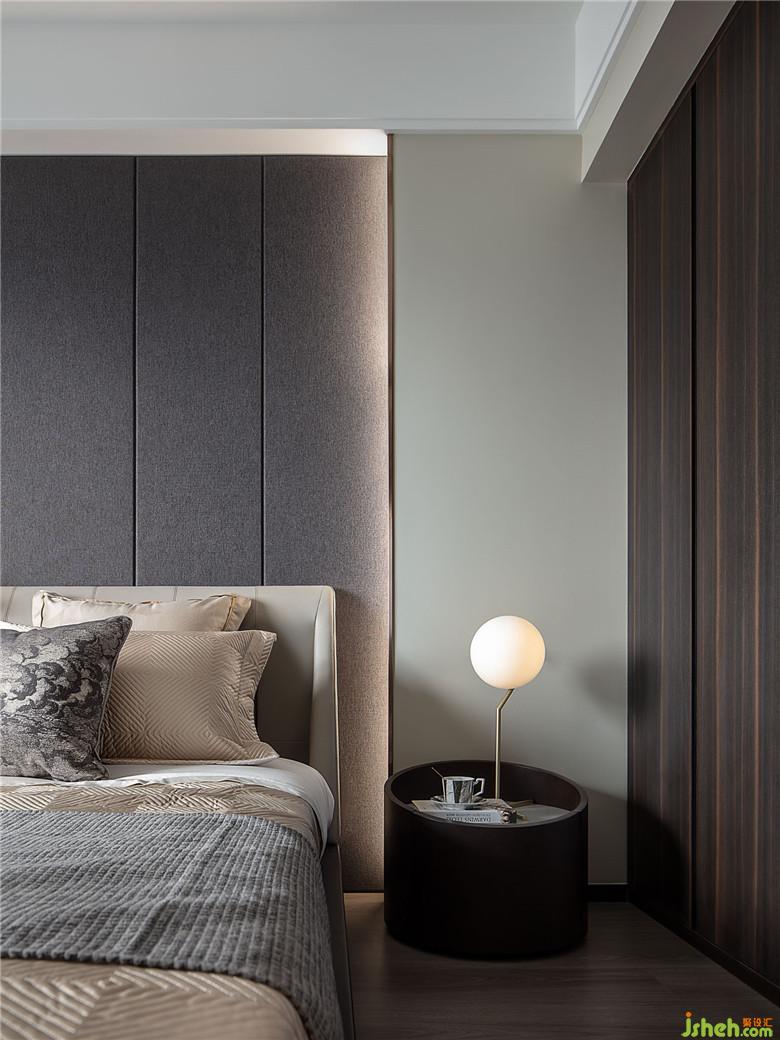 主臥,室內(nèi)設(shè)計師床頭硬包的使用仿佛深秋的大衣一樣給人以溫暖和安全?;鸩耦^狀的吊燈,更是提高了臥室的溫度。臺燈的造型也是跟吊燈相呼應,顯出了幾分可愛。配色雖然偏沉穩(wěn),卻不讓人壓抑。就像中年的人,穩(wěn)重了,周全了,卻還有自己的夢想和感情的回轉(zhuǎn)。
