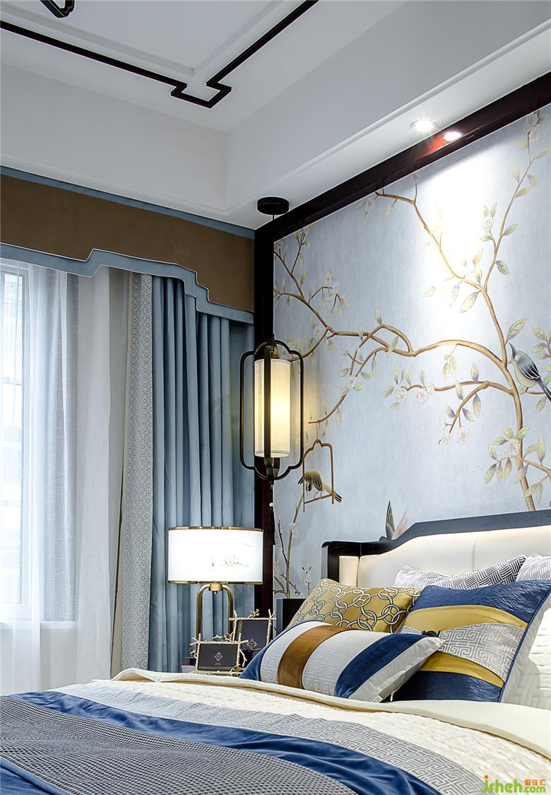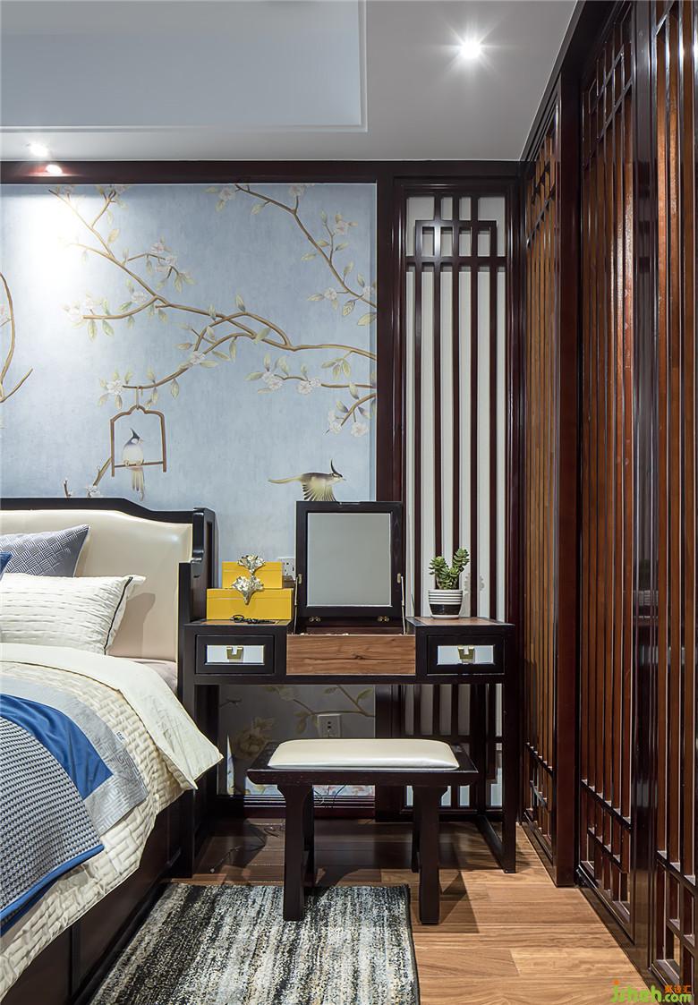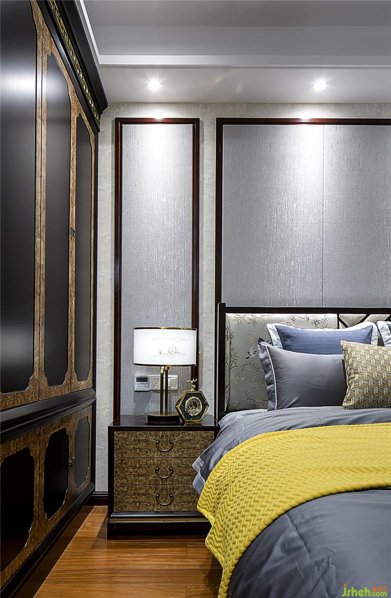 ▲次臥,采用方木嵌軟包的床頭架,既保留東方質(zhì)樸的氣韻又不失恬淡,背景取代了繁瑣的雕花,用風(fēng)格獨特的布飾面結(jié)合實木線條彰顯出剛?cè)岵?jì)。