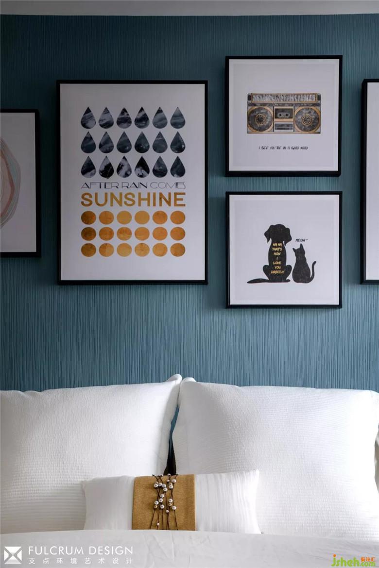 深灰和墨藍的搭配,迷幻的立體壁布,似知識的海洋,又似思想的星空。裝修公司