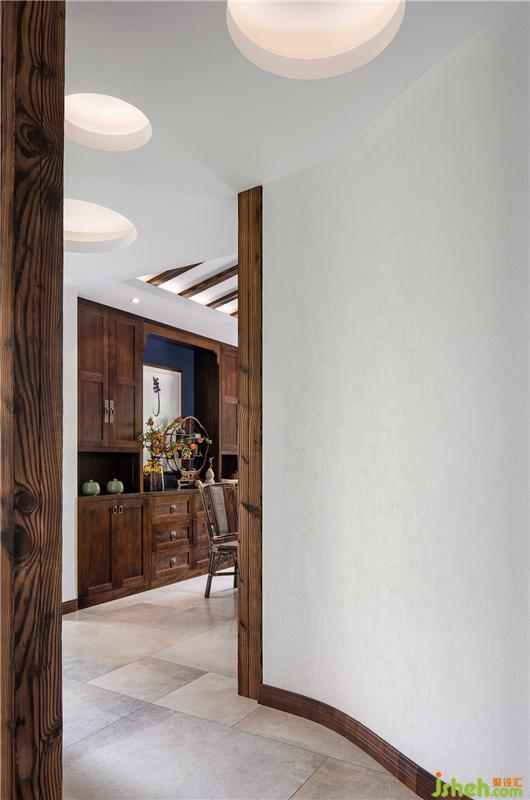 前后錯(cuò)位的弧形隔斷墻,