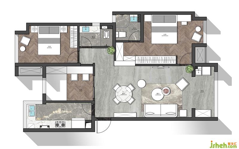 木紋與灰調(diào)的色彩變化,使空間更為和諧。