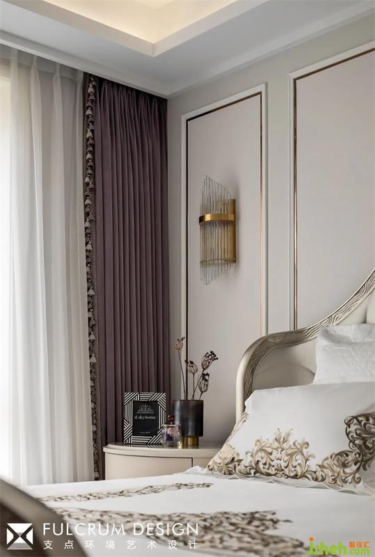 對稱在古今中外都是最有儀式感的造型手法,壁燈以對稱的形式點綴背景墻出現在這個家的許多空間,旨在給予業(yè)主一家更有儀式感的生活氛圍。