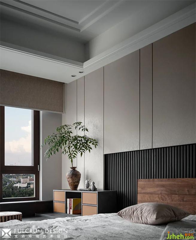 改變床頭方向,靠在床上也可享受270°景觀,視野更加開闊,且能獲得更大的儲(chǔ)物面積,門口用貓爬架隔出內(nèi)玄關(guān),功能與儀式感并存。