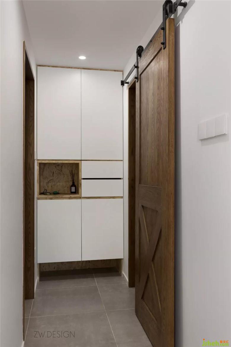 玄關(guān)是在家的港口,鞋柜中間的方形盒子,抽屜就是港口的小倉庫,平時可以存放鑰匙和拆快遞的工具等。方形盒子上面安裝了感應(yīng)燈,時刻等待著屋主回家向他招手。