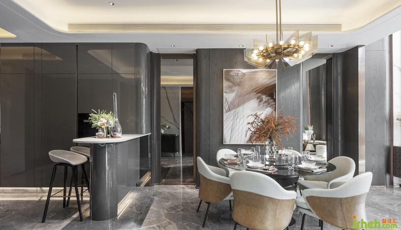 獨(dú)立餐廳,與廚房咫尺相近,圓形餐桌更適合六口之家的用餐需求,別墅裝飾開(kāi)一瓶美酒共享美食,家人相聚 or 會(huì)客宴請(qǐng)更能體會(huì)到親密自然、舒適愜意。