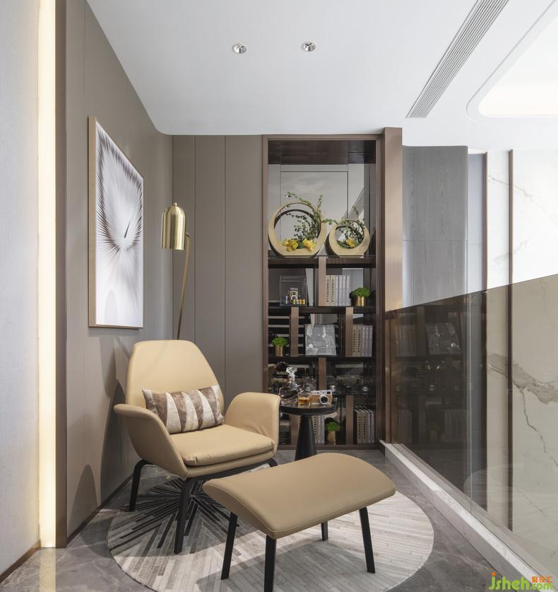 二層除了兩個(gè)臥室套房外,泉州別墅設(shè)計(jì)還打造專屬獨(dú)享的私密空間,夜幕降臨,身心放松還未有睡意的時(shí)候,可在此品一杯美酒,閱讀一本經(jīng)典。除此之外還可以觀賞一層客廳的美景。