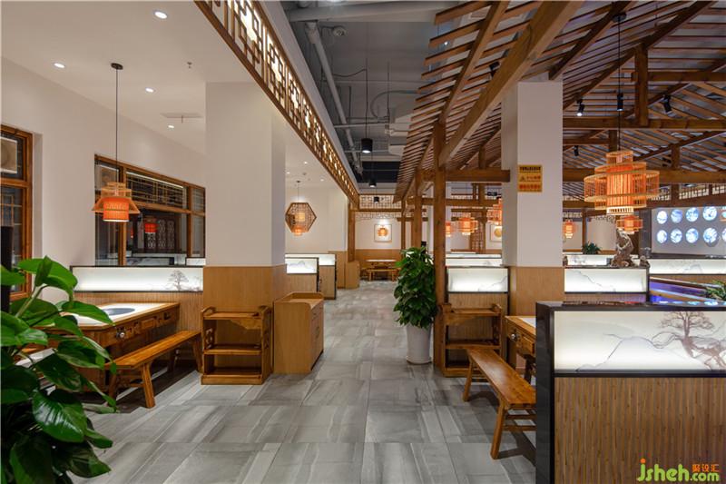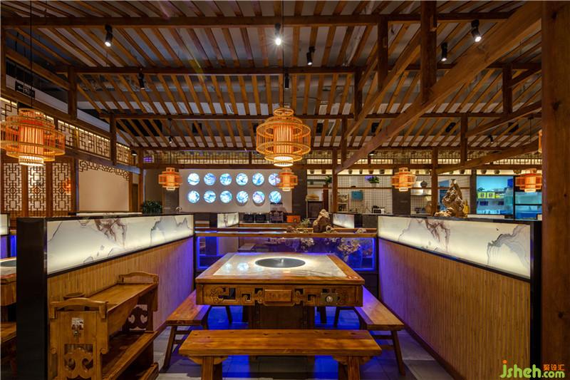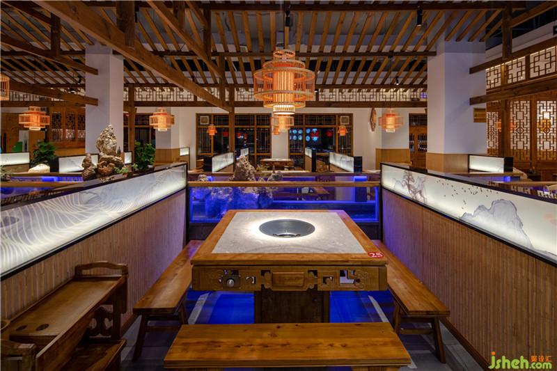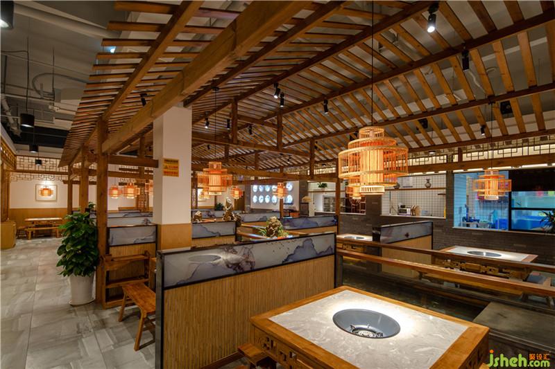 本案在設計理念上采取新式川派魚火鍋概念設計,空間中注入中國傳統(tǒng)人文元素,把中式元素精簡提煉,非常和諧的融入進去,增添了空間的品質與文化內涵,使其空間具有人文溫度。整體色調采取淺咖色色調,色彩上清新愉悅。