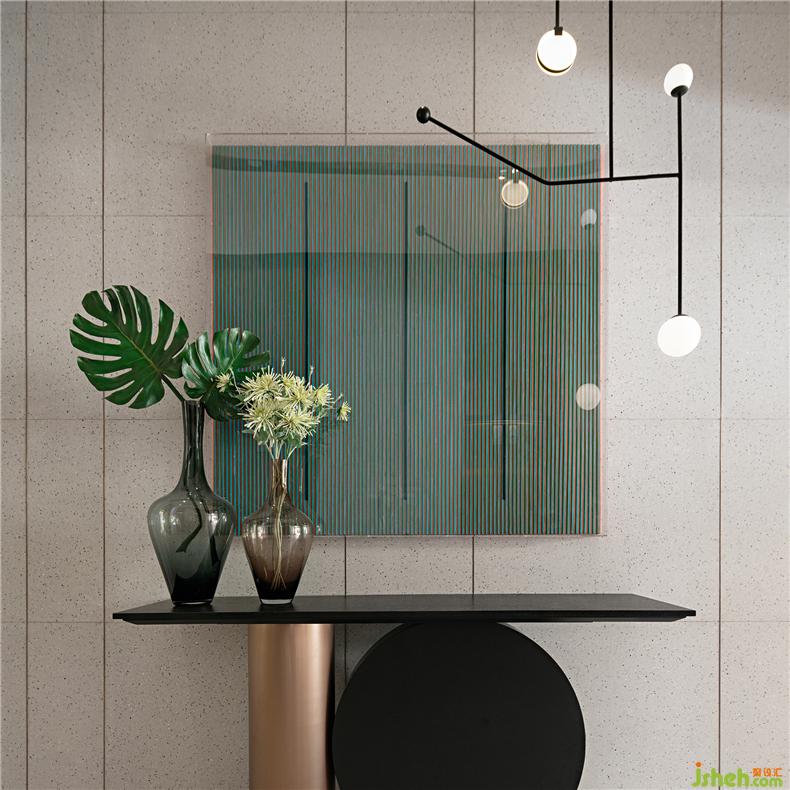 和當(dāng)下眾多豪宅的公共區(qū)域追求彰顯宏大氣派不同,上海盧灣68號公寓以 并使用擁有復(fù)古美感的綠色水磨石材料,通過精細(xì)的空間排布,以優(yōu)雅錯落的線條和塊面組合、簡單造型的家俬與燈具、裝修設(shè)計特別造型的藝術(shù)品和飾品,營造出私屬、獨特的氛圍,另業(yè)主甫一踏入大樓,即感受到項目的出色格調(diào),仿佛時光瞬間慢下來,也靜了下來。