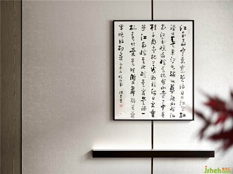 來自成都的著名書法家陳維昌老師受邀揮墨寫下了白居易的《憶江南》:“日出江花紅勝火,春來江水綠如藍。能不憶江南?”;法國知名的紡織品牌Yves Delorme則體現(xiàn)了品牌濃厚的東方情愫 ;書房中來自日本京都的眾多擺件,也從另一個角度,昭示了中國文化的影響深遠。這些看起來極為質樸、克制的物件往往都源自復雜的手工工藝。別墅樣板房設計