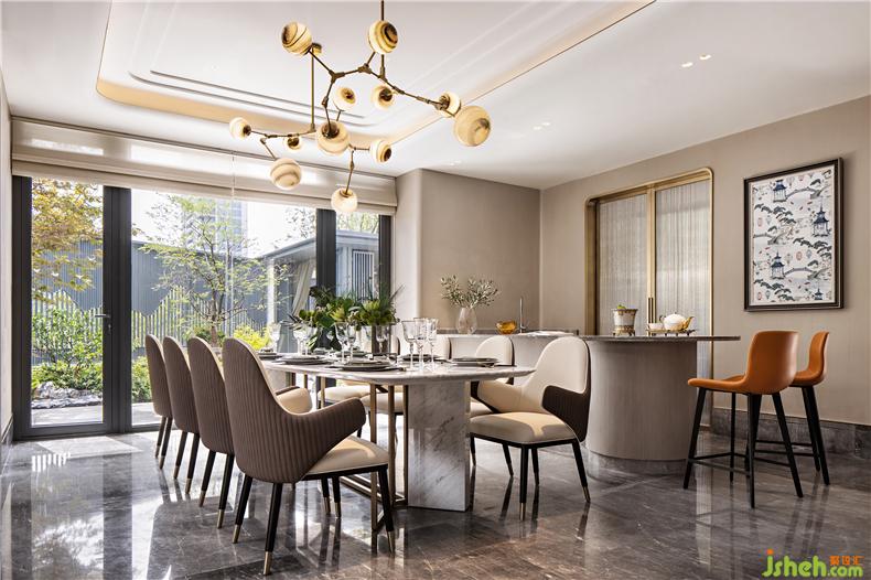 而這種歷史人文的衍變與摩登文化腔調(diào)為空間設(shè)計的創(chuàng)意原點:多種文化交融的氛圍、別墅裝飾低調(diào)致奢的貴族氣息、幾何形的建筑元素,具有年代感的配色……無一不體現(xiàn)出民國時期的萬種風(fēng)情。