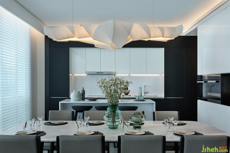 周圍層巒聳翠、盈盈湖水,從上方俯瞰,4萬(wàn)㎡的天鵝湖一覽無(wú)余,加上富有人文藝術(shù)氣息的何香凝美術(shù)館、世界之窗、OCT-LOFT創(chuàng)意文化園等,與李先生選擇華僑城的初衷不謀而合,這里自然寧?kù)o的生活環(huán)境定調(diào)了舒適自在的生活狀態(tài)。在我們看來(lái),室內(nèi)設(shè)計(jì)與建筑、周邊環(huán)境有著不可分割的關(guān)系。