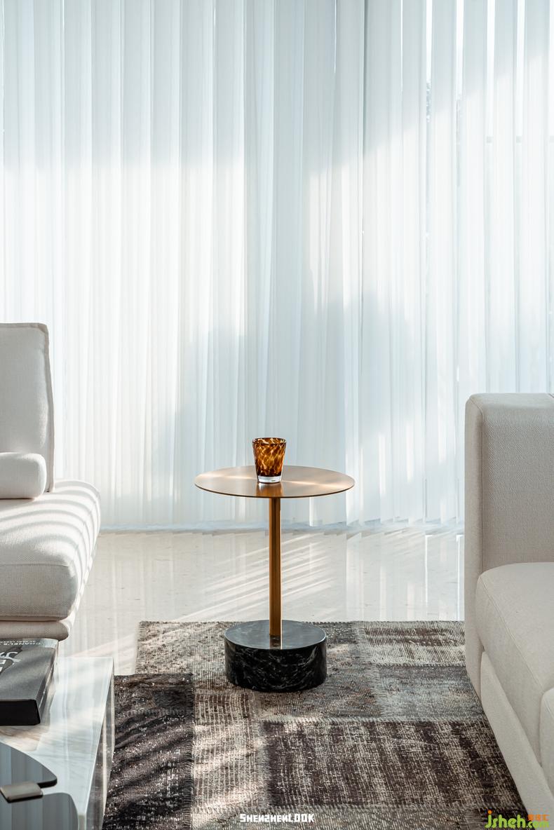 走進李先生的家,對白色產生的空間感有非常直觀的感受,豪宅設計大面積留白的視覺沖擊力非常震撼,寬敞自由,讓內部空間更有延展性?!绊斕炝⒌亍钡穆涞夭晒獠A?,讓室外景觀穿越空間,穿透力十足。在光影的作用下,白色的空間不顯冷淡,反而溫潤如玉,干凈通透。