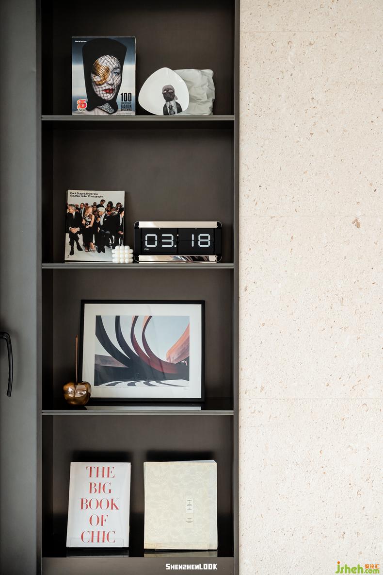 白色沙發(fā)搭配黑灰質感家具,避免了色調單一破壞生活感,同時一組TOM DIXON的落地燈恰到好處地將虛實關系勾勒出來,將視線引向另一側。