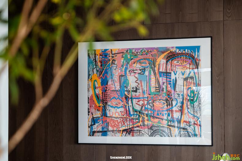 西廚旁邊是來(lái)自泰國(guó)的青年藝術(shù)家popkapi的畫(huà)作,畫(huà)面顏色極其鮮艷明亮,大膽的用色和靈活的顏色線條畫(huà)面形似街頭涂鴉景象,與柔美曲線的Yuwana女性雕塑巧妙的融合形成一種有趣的空間表達(dá),以營(yíng)造一種自由愜意的場(chǎng)所氛圍。