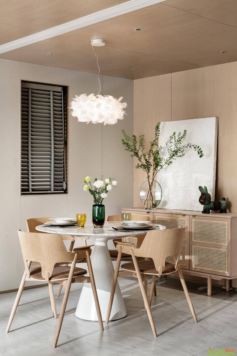 廣闊的自然是成都人心靈的補(bǔ)給站。在理解這份心安與愜意的基礎(chǔ)上,樣板房設(shè)計(jì)WED中熙設(shè)計(jì)運(yùn)用原木加白色大理石作為整體空間主調(diào)性,搭配富有特色觸感的織物、棉麻面料、藤編材質(zhì)與蘊(yùn)含自然肌理的藝術(shù)畫,營造出自然的感覺。
