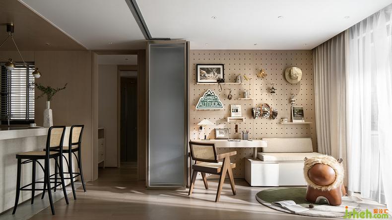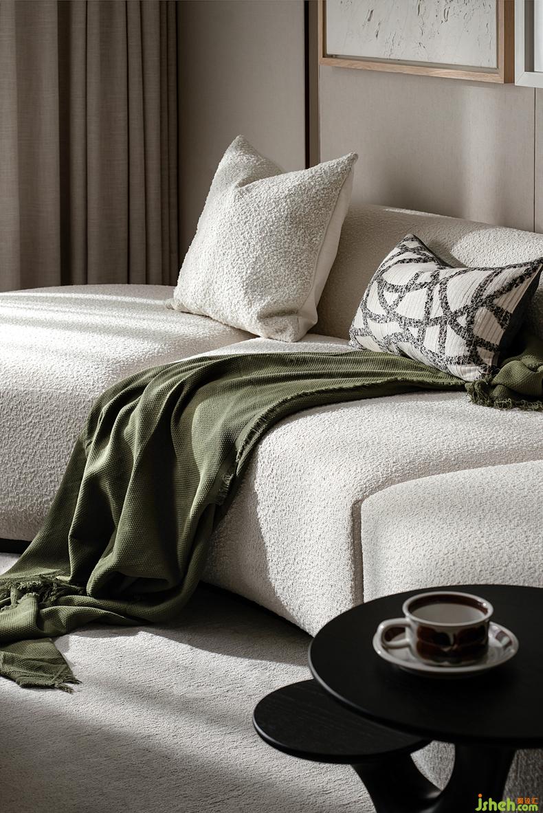 延續(xù)這份對(duì)自然親近的空間節(jié)奏,設(shè)計(jì)師選用柔美曲線造型的米白色沙發(fā),點(diǎn)綴絨面橙色單椅,搭配光滑質(zhì)感和可自由變換的B-line品牌茶幾,恰到好處的契合了空間表達(dá)又突破空間單一感,是朋友來做客最喜愛的地方,陷入柔軟的沙發(fā)中,一杯清酒,幾縷柔和光柱,便是最愜意的暢聊時(shí)光。