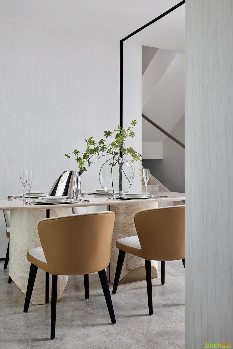 在整個(gè)客廳挑空的空間,隨著線條伸展的方向,空間力量乍現(xiàn),別墅設(shè)計(jì)空間感與節(jié)奏感不言而喻。從二層到一層傾瀉而下的整面落地玻璃將自然光引入,再經(jīng)過室內(nèi)中三角琴帶來(lái)的悠揚(yáng)奏鳴曲,氛圍被重構(gòu),讓藏在光影變化和相互作用中的歡快與跳躍感幻化出不同的畫境,同時(shí)增加了整個(gè)房子的藝術(shù)氣息。