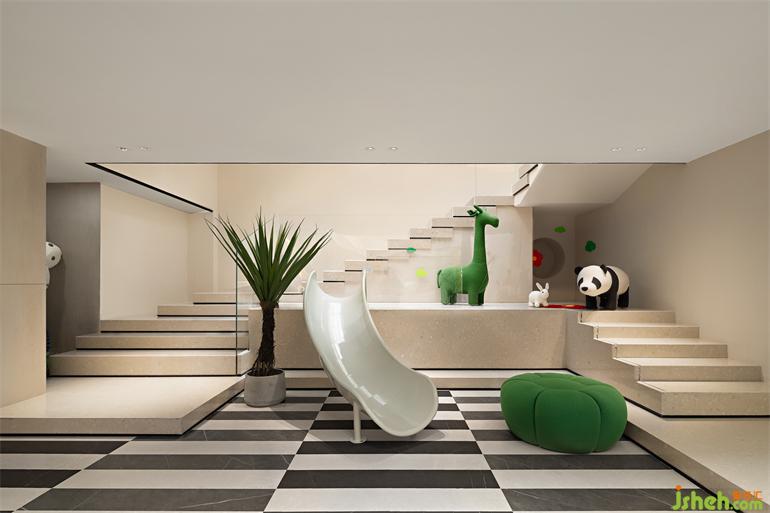 通過對(duì)未知領(lǐng)域的場(chǎng)景想象,觸及并完成宇宙、暗物質(zhì)以及未來儲(chǔ)備的設(shè)想,致敬萬物生靈。生活美學(xué)館設(shè)計(jì)鮮明的撞色藝術(shù)品、可愛的玩偶、有趣的滑梯擺設(shè),用不同的存在維度,讓童趣對(duì)話藝術(shù)。