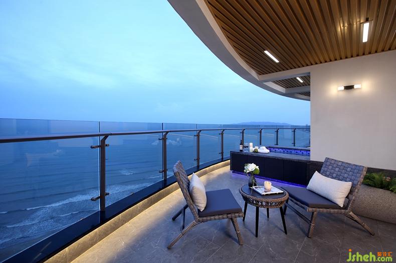 為了不浪費(fèi)270°環(huán)抱大海的陽(yáng)臺(tái)設(shè)計(jì),更不能浪費(fèi)每一寸空間。根據(jù)屋主的喜好,我們?cè)陉?yáng)臺(tái)設(shè)置了泡池,可友聚、可冥想。當(dāng)置身于一泓清水中,目光所及,心境也隨之游弋于碧海的寬廣與藍(lán)天的遼闊。