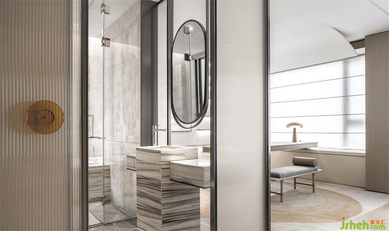 半透明的長虹玻璃隔墻使空間邊界模糊,擺脫傳統(tǒng)的以隔墻來控制布局的模式,疊墅樣板房設(shè)計使空間靈活多變,在保證私密性的同時,使空間更具動態(tài)與實用性。