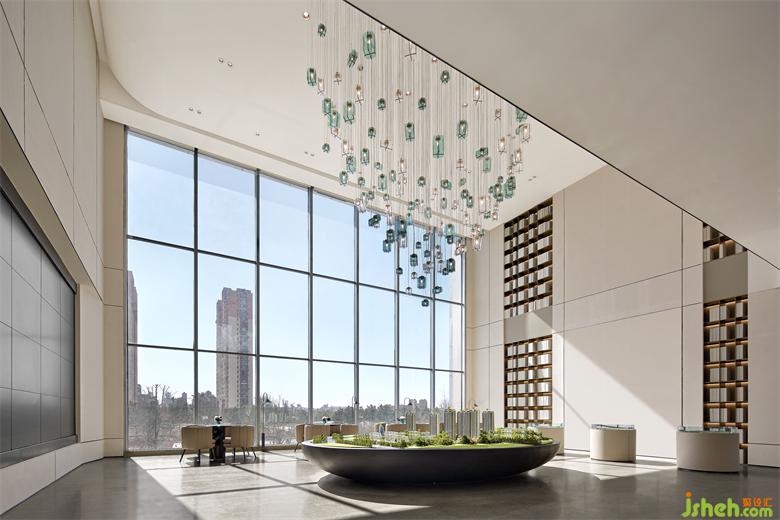 售樓處設(shè)計(jì)整面的玻璃墻,消弭了空間內(nèi)外距離感,光作為連接現(xiàn)實(shí)與虛幻的媒介,營造出藝術(shù)無限延展的維度,足以讓訪客翱翔其中。