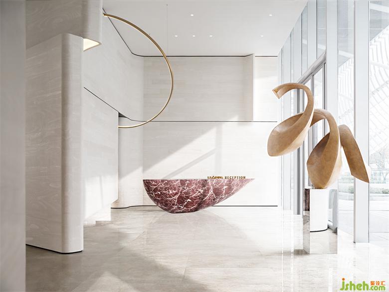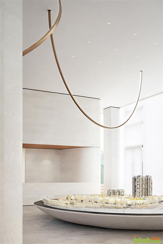 營銷中心設(shè)計利用自然舒展開來的弧面造型,水吧臺應(yīng)運而生,好像是自然生長出來一般。